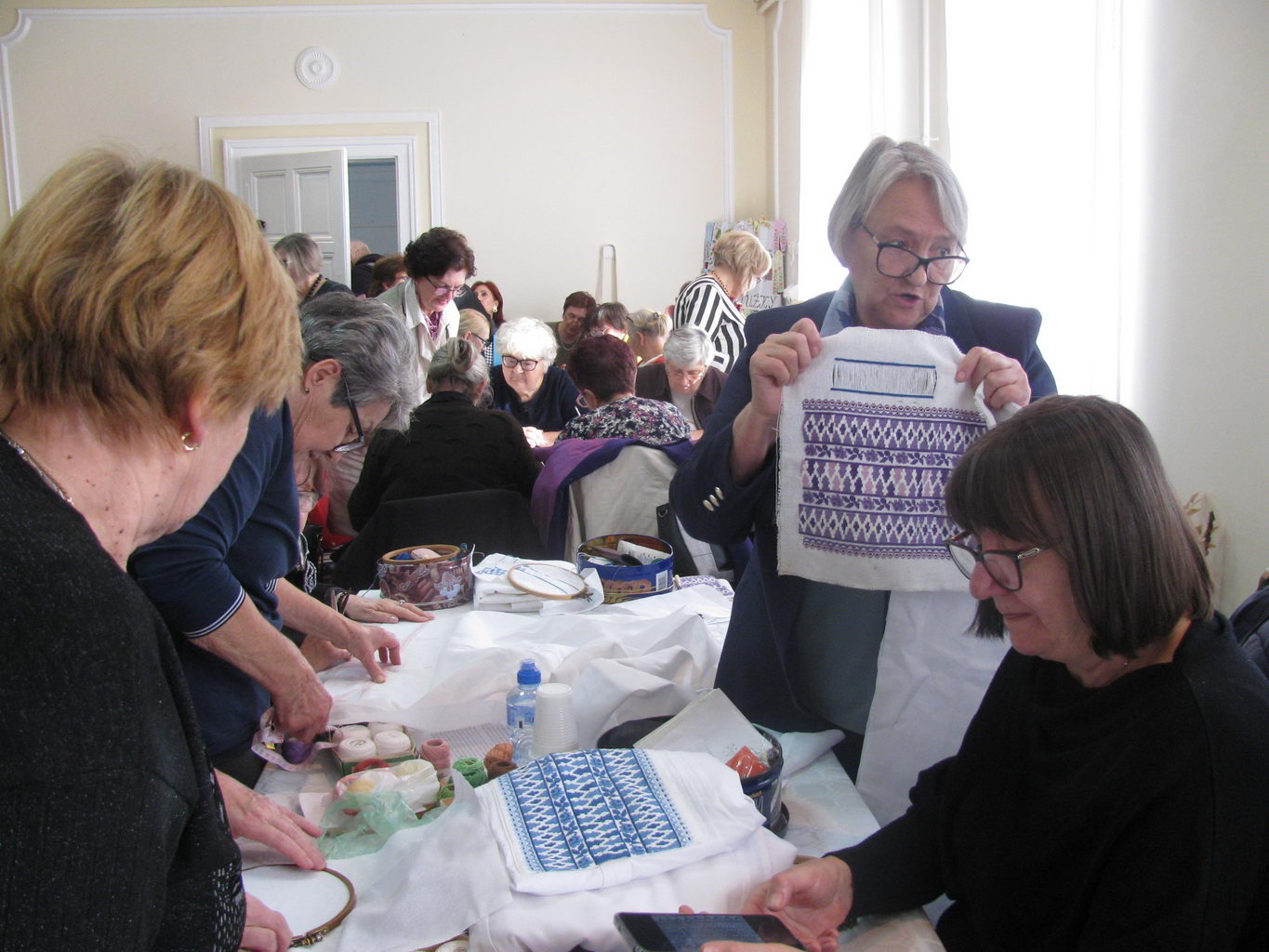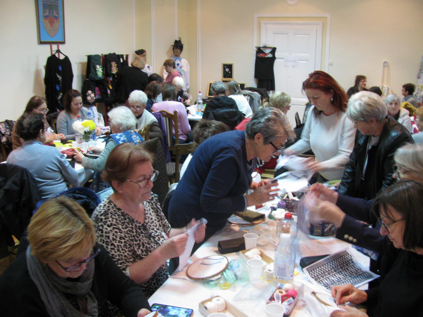 V sobotu 15. novembra 2025 bola zorganizovaná dielňa ručných prác, presnejšie povedané dielne a to: maľovanie na stužky, vyšívanie pomocou stužiek a vyšívanie ažúry. Dielňa bola realizovaná v rámci Asociácie slovenských spolkov žien a Etno sekcie Selenča, ktorá pôsobí v rámci MOMS Selenča. Prítomných bolo 63 osôb zo 16. osád, kde pôsobia spolky žien pod vedením ASSŽ. Selenčské spolkárky na čele s predsedníčkou Vierou Strehárskou si mimoriadne dobre premysleli každý detail súvisiaci s prijímaním návštev, s dielňami, s návštevou etno domu rodiny Čapeľovej a galérie umelkyne Anny Nosálovej, ako aj s občerstvením a pohostením celkove. Na začiatku nás privítali v aule kultúrneho domu a žiaci predviedli kultúrno-umelecký program. Vypočuli sme si základné údaje o činnosti Etno sekcie, ktoré podala Anna Petrášová. Potom selenčský Orchestrík pod taktovkou Juraja Súdiho, spev a recitácia nám spríjemnili sobotajší deň. Pokračovala prededníčka ASSŽ Viera Miškovicová a potom si prítomní obzreli výstavu Etno sekcie pod názvom Od venca po čepiec. Potom sa už spolkárky podelili do troch skupín, podľa toho, ktorú techniku ručnej práce sa chceli naučiť. Všetky dielne však boli zamerané na prácu s textíliami. Zdá sa nám, že vyšívanie stužkami bolo najatraktívnejšie. Lektorka Renáta Súdiová sa snažila ženám poskytnúť informácie, ako si začínať pri tejto neľahkej robote a prakticky im pri tom pomôcť. Pravda pri všetkých ručných prácach, tak aj pri tejto najviac robí prax a neúnavné opakovanie, aby sa osoba nielen naučila techniku, ale získala aj veľkú pedantnosť. Stužky boli prítomné aj v druhej dielni, keď sa na ne maľovalo. Lektorkou bola Anna Nosálová, ktorá od začiatku do konca bdela nad svojimi zverenkyňami a výsledok bolo vidno na koniec, keď bola zorganizovaná mini výstava zo všetkého, čo ženy vytvorili v hociktorej skupine.. Tretia skupina spolkárok sa zaoberala vyšívaním a vytváraním ažúrky. Veľmi náročná technika keď ide o zrak. Tenučké nitky treba pozorne stýbať a ani jednu vynechať, aby ažúrka bola pekná , úplná a pôsobivá na šatách, prípadne blúzke, košeli... Dve lektorky Anna Klinková a Zuzana Kotvášová ešte na začiatku vysvetlili samu techniku a každej spolkárke pomáhali maximálne. Nuž robota šla skoro ako po masle. Ženy boli šťastné, že zvládli nové techniky ručných prác a tak trochu hrdé na seba, lebo keď žena má nejaké predsavzatie , zväčša ho aj realizuje. Tento raz úloha splnená na sto percent.